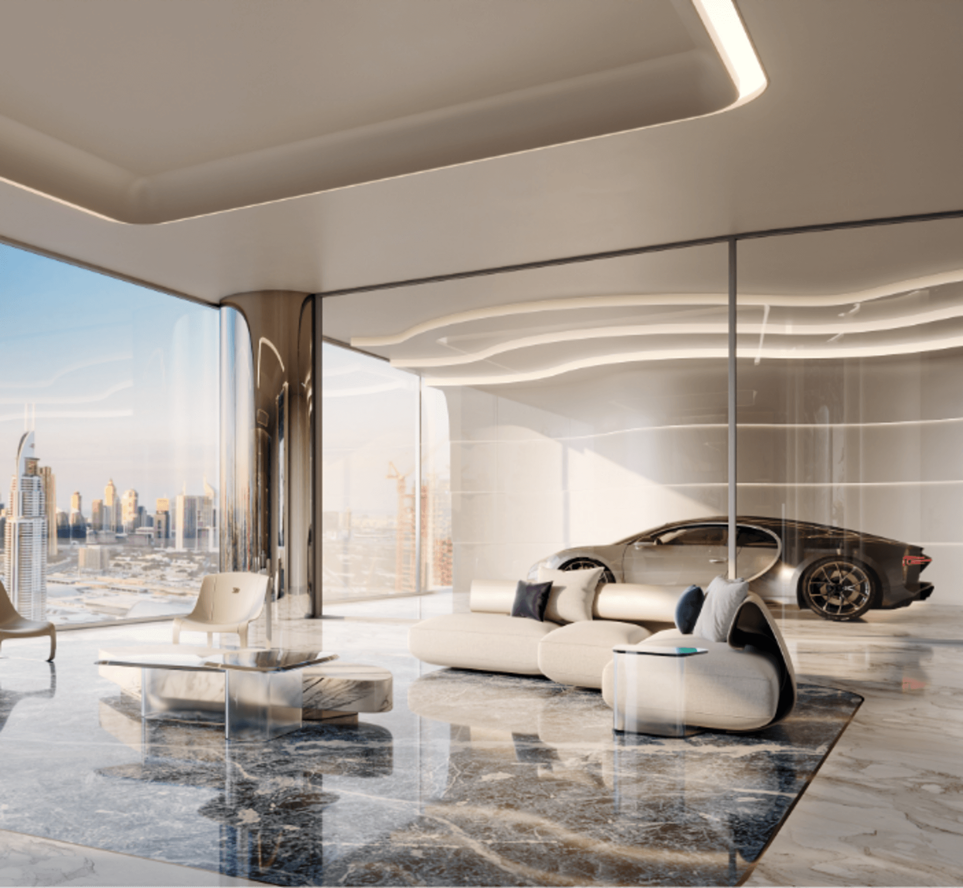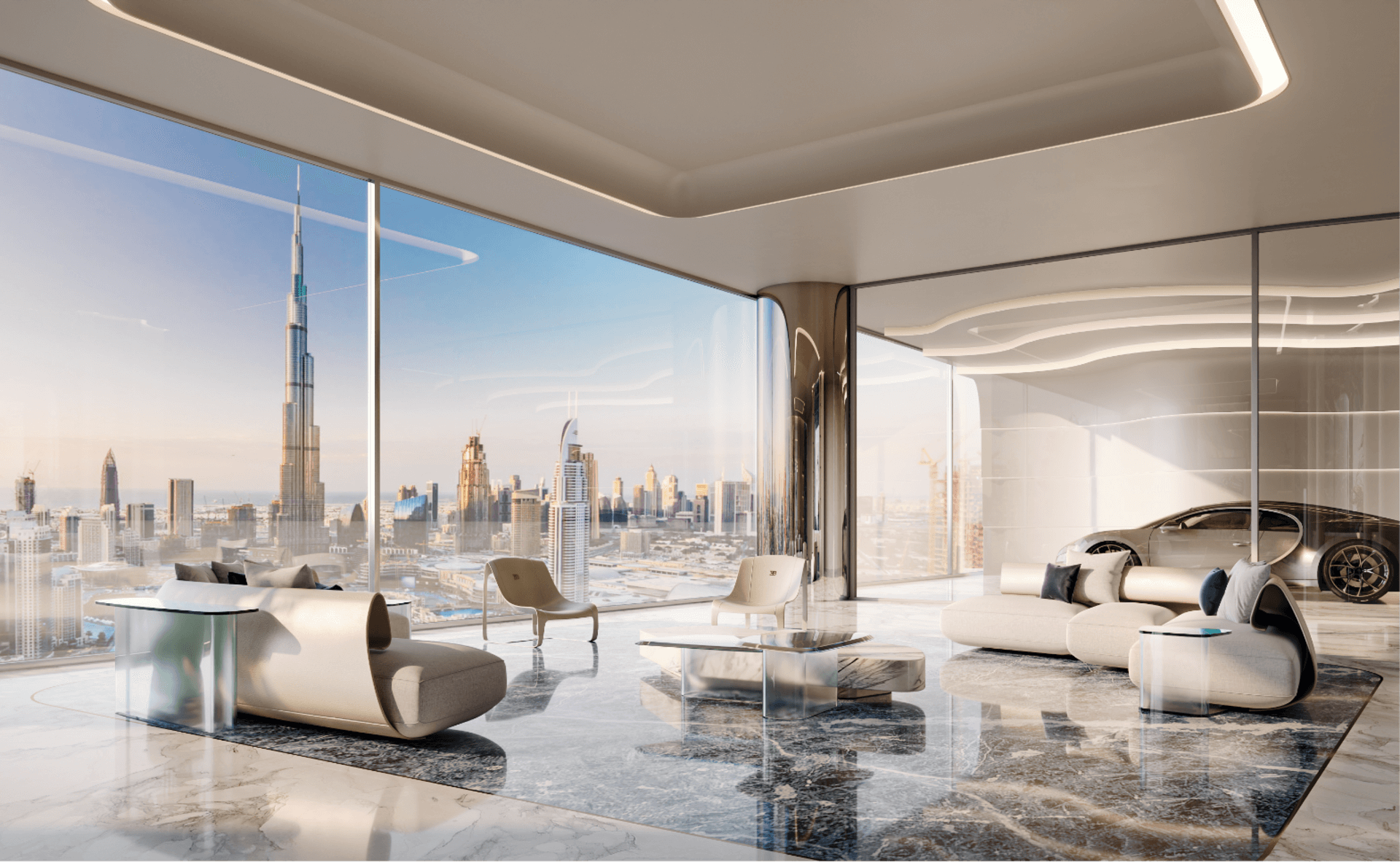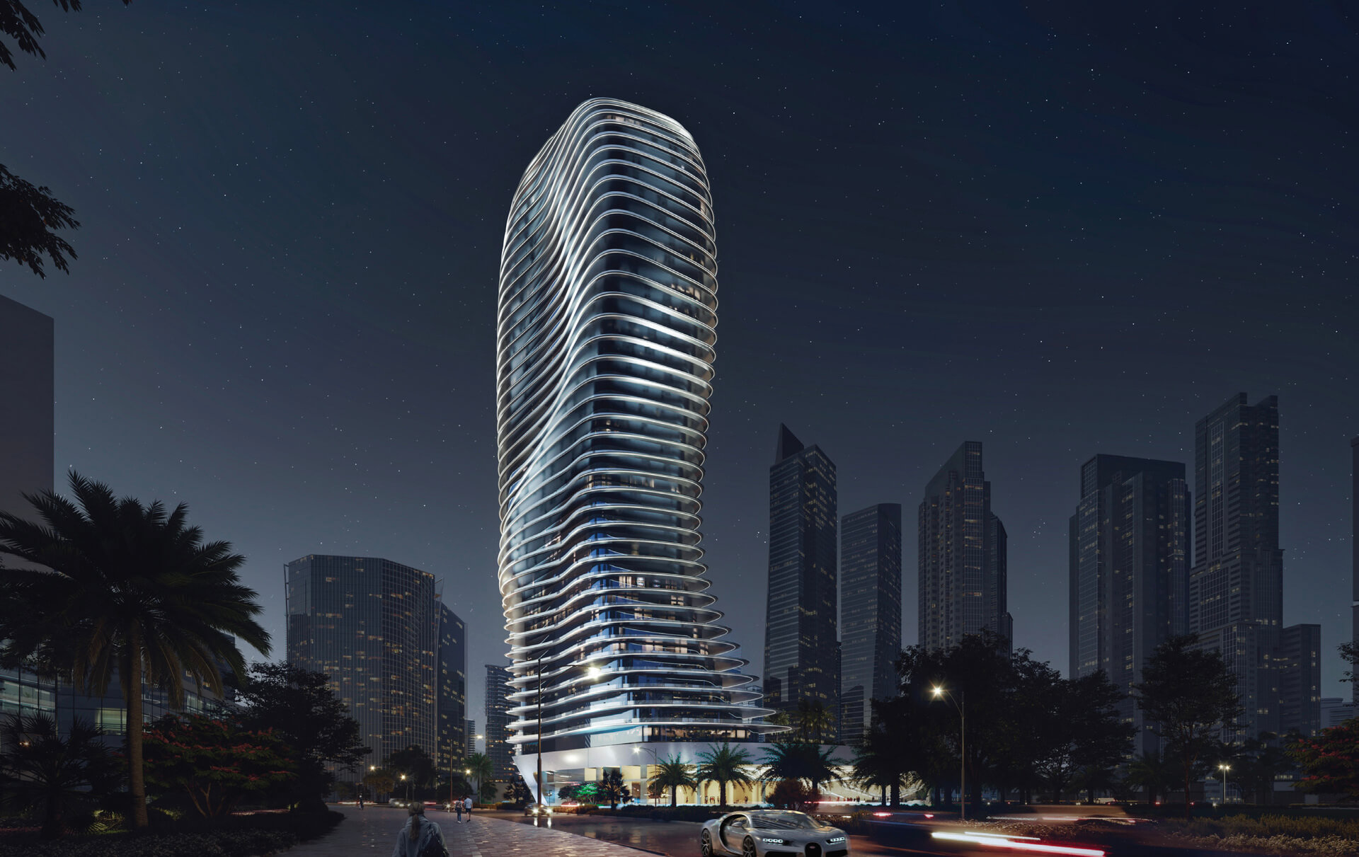 Born from the fluidity of nature, BUGATTI Residences by Binghatti is designed with inventive vivacity, resounding sheer opulence. The facade is characterized by fluid lines, and subtle curves reminiscent of the French Riviera — a resort inspired living in the heart of the metropolis.