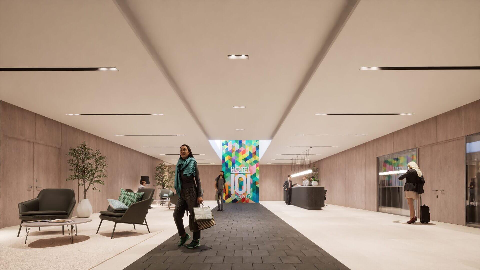 Hotel101-Madrid will house 680 HappyRooms designed for comfort, convenience, and value for every type of traveler- a full-service hotel without the upscale price tag.